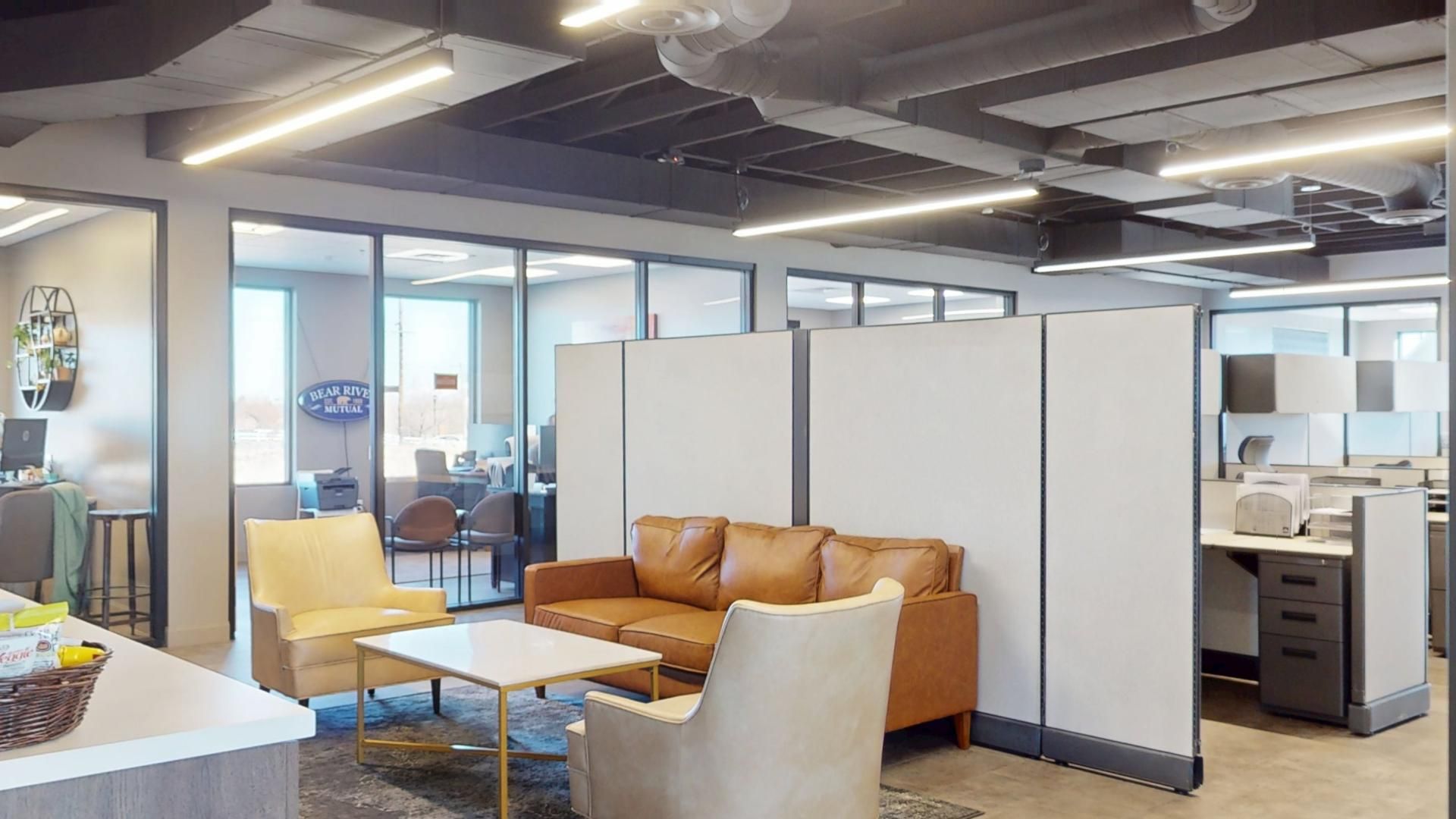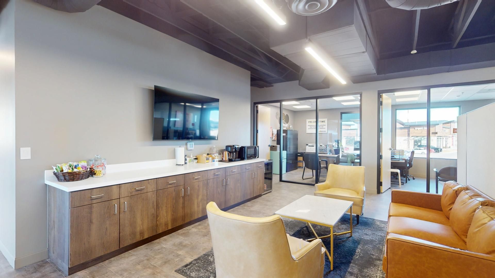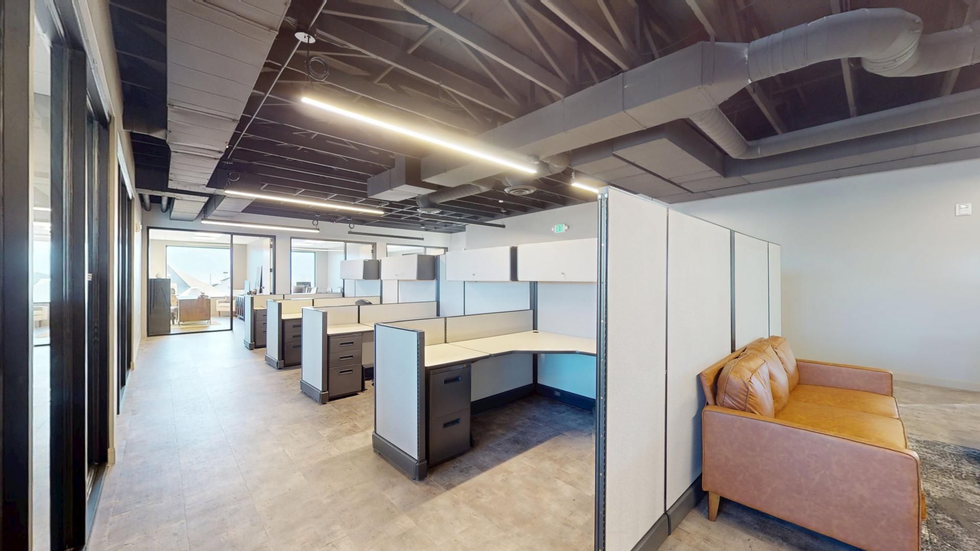 The available office is shown both unfurnished and with furniture as well as pictures of the office. To see the entire suite, either click on this link or copy/paste it to your browser to take a 3D walkthrough.